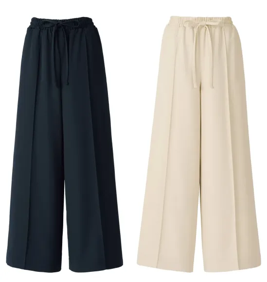 ・ウエストはシャーリングと紐仕様のウエストドロスト仕様で自由にサイズ調整可能・オールゴム仕様でパジャマのような心地よい着心地・センタープレスが縦ラインを強調し足をすらっと長く美脚見え・サラリとしたドライな風合いで肌にべたつかず快適・タテヨコに伸びる2WAYストレッチ素材であらゆるシーンの動作に対応・撥水性に優れた防汚加工で汚れが付きにくく清潔感をキープ・ワイドシルエットで動きやすく座りやすい・裾上げ済み商品でお届け後すぐに着用可能・家庭洗濯OKでお手入れも簡単
