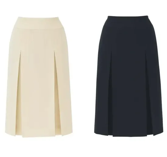 ・上品なシルエットを演出するロング丈プリーツデザイン・タテヨコに伸びる2WAYストレッチで動きやすく快適・汚れが付きにくく落ちやすい防汚機能を搭載・ウエスト後ろゴム仕様で締め付け感を軽減しラクな着用感・足さばきの良い後ろベンツ仕様でスムーズな動作をサポート・出し入れしやすい斜めポケット付きで実用性も確保