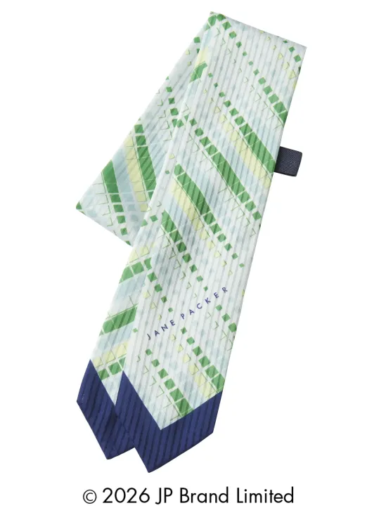 ・爽やかな配色とモザイク柄が顔まわりを華やかに彩るアクセントアイテム・ループに通すだけで簡単に装着できる・いつものユニフォームにプラスするだけで、手軽に印象を変えられる便利なアイテム